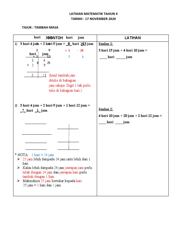 Latihan Matematik Tahun 4 Tambah Masa Pdf
